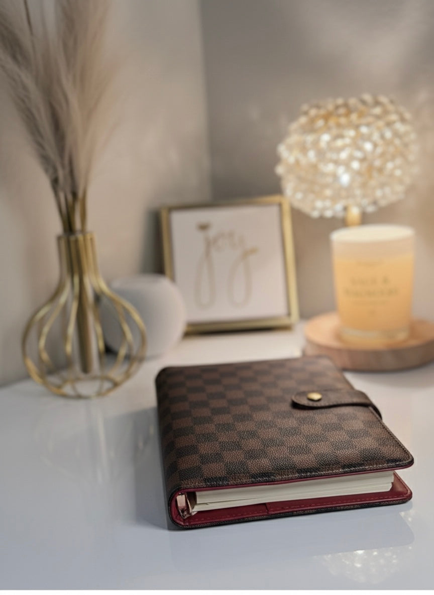 Nexella Luxe Signature Planner With Red Interior, A5 Checkered Luxury 6 Ring Planner